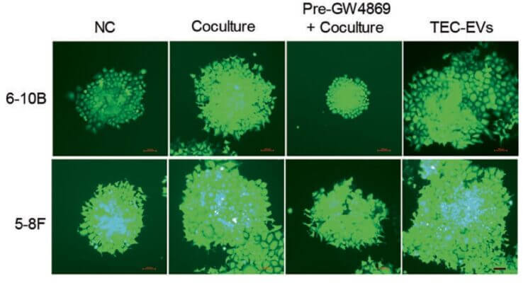 Understanding the mechanisms driving nasopharyngeal carcinoma (NPC) progression and metastasis requires physiologically relevant in vitro models. In this study, researchers investigated how FLT1-enriched extracellular vesicles (EVs) mediate a pro-metastatic feedback loop between NPC cells and endothelial cells. To accurately model tumor architecture and spatial biomarker distribution, they employed VitroGel® Hydrogel Matrix, a xeno-free hydrogel system, to generate 3D NPC spheroids that mimic the in vivo tumor microenvironment.